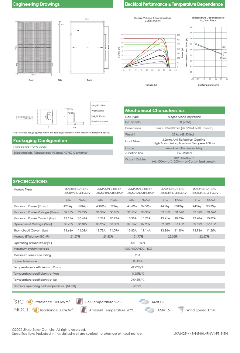 Tiger Neo N-type 425-445 Wat MONO-FACIAL PV MODULE